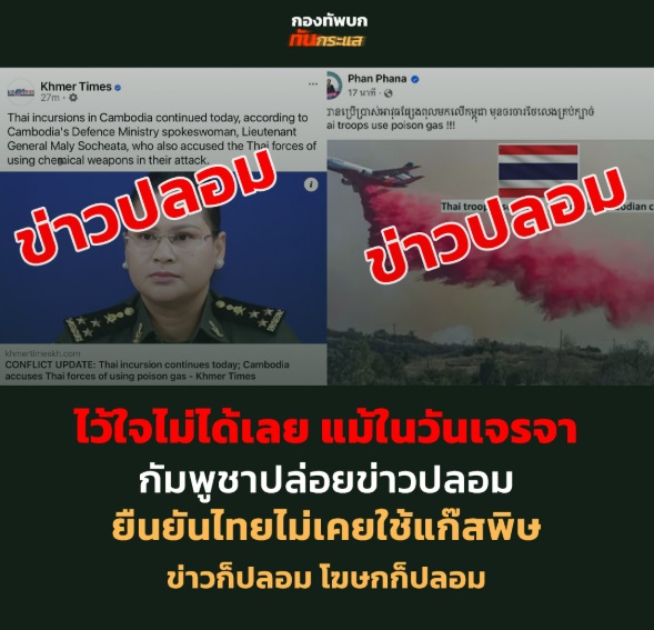 During the border clash between Thailand and Cambodia in late July 2025, a series of false information was spread from the Cambodian side in an effort to discredit Thailand. The following are examples of such claims from the Cambodian side and foreign countries that have been verified as false: