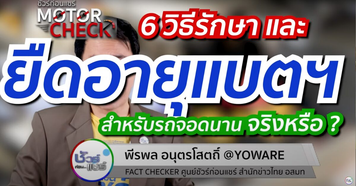 ดูเพิ่มเติมรายการ ชัวร์ก่อนแชร์ Motor Check : 6 วิธียืดอายุแบตฯ รถยนต์ เมื่อไม่ใช้นาน จริงหรือ ?