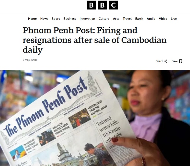 ต่อมาในพฤษภาคม 2018 Phnom Penh Post หนังสือพิมพ์อิสระในกัมพูชาที่ได้รับความนิยมอย่างสูง ถูกขายกิจการให้กับนักลงทุนชาวมาเลเซียที่มีความสัมพันธ์กับฮุน เซน ทำให้สูญเสียความเป็นอิสระและเข้าข้างรัฐบาลมากขึ้น จนพรรคประชาชนกัมพูชา (CPP) ชนะการเลือกตั้งทั่วไปในเดือนกรกฎาคม 2018