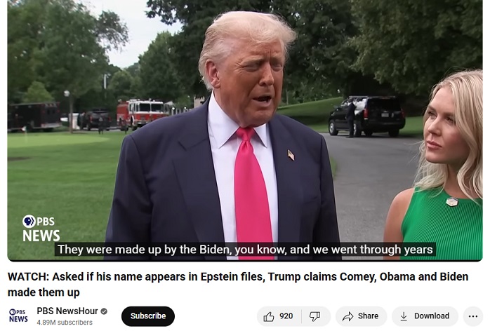 มีข้อมูลเท็จเกี่ยวกับคดี Epstein Files เผยแพร่ทางสื่อสังคมออนไลน์ เมื่อประธานาธิบดี โดนัลด์ ทรัมป์ อ้างว่า คู่แข่งทางการเมืองอย่าง บารัค โอบามา และ โจ ไบเดน คือตัวการที่ปลุกกระแสให้ผู้คนในสังคมเชื่อว่ารายชื่อลูกค้าของ เจฟฟรีย์ เอปสตีน นักโทษคดีค้ากามเด็ก หรือที่รู้จักในชื่อ Epstein Files มีอยู่จริง