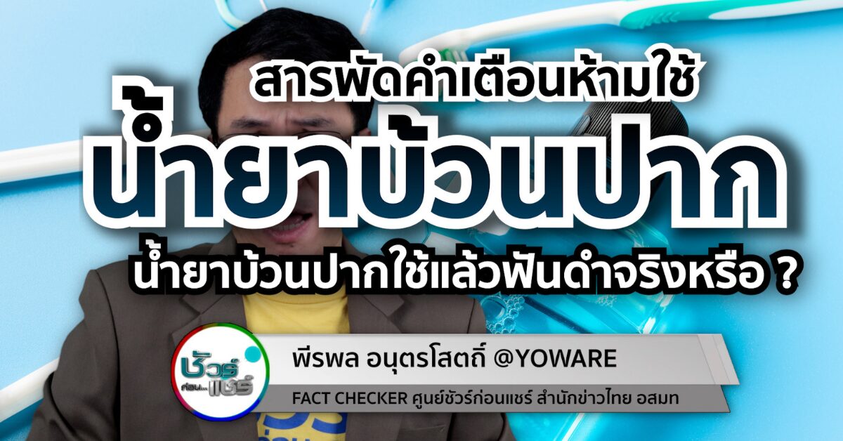 น้ำยาบ้วนปากกลายเป็นผลิตภัณฑ์ดูแลช่องปากที่หลายคนขาดไม่ได้ ด้วยความเชื่อว่าจะช่วยให้ลมหายใจสดชื่นและสุขภาพช่องปากดีขึ้น แต่ในโลกโซเชียลกลับเต็มไปด้วยข้อมูลที่ทั้งจริงและเท็จเกี่ยวกับคุณประโยชน์และโทษของมัน รายการ “ชัวร์ก่อนแชร์” ได้รวบรวม 5 เรื่องฮิตที่ถูกพูดถึงบ่อยที่สุดมาไขข้อข้องใจให้กระจ่าง เพื่อให้เราใช้น้ำยาบ้วนปากได้อย่างถูกต้องและปลอดภัย