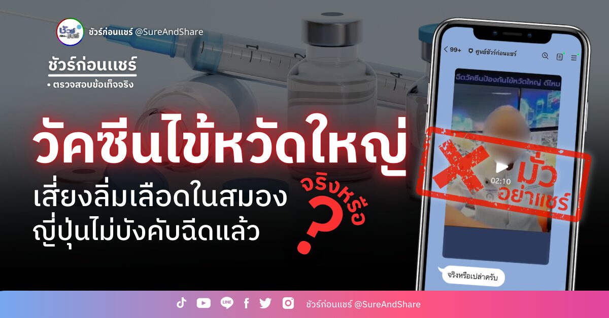 ศูนย์ชัวร์ก่อนแชร์ ตรวจสอบพบว่า วิดีโอคำดังกล่าวเป็นคำแนะนำเกี่ยวกับข้อควรระวังในการฉีดวัคซีนไข้หวัดใหญ่ โดยอ้างว่าเมื่อฉีดวัคซีนแล้วจะขึ้นสมอง เป็นลิ่มไปอุดในสมอง ทำให้ประสาทเพี้ยน คล้ายกับเหตุการณ์ลิ่มเลือดอุดตันในสมองที่พบมากในช่วงการระบาดของโควิด โดยผู้พูดกล่าวว่า การติดไข้หวัดใหญ่ไม่ใช่เรื่องใหญ่โต หากดูแลรักษาตัวเองดี ไข้หวัดใหญ่ก็จะไม่ติด และรัฐบาลญี่ปุ่นไม่มีการบังคับให้ประชาชนฉีดวัคซีน ทั้งนี้ คลิปวิดีโอดังกล่าวมีการเผยแพร่และส่งต่อในสังคมออนไลน์เป็นจำนวนมาก
