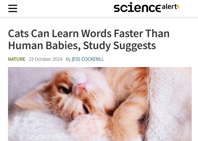 มีข่าวน่าสงสัยเกี่ยวกับแมวเผยแพร่ในต่างประเทศ ที่อ้างว่าแมวมีความสามารถเชื่อมโยงรูปภาพกับคำได้เร็วกว่าทารก