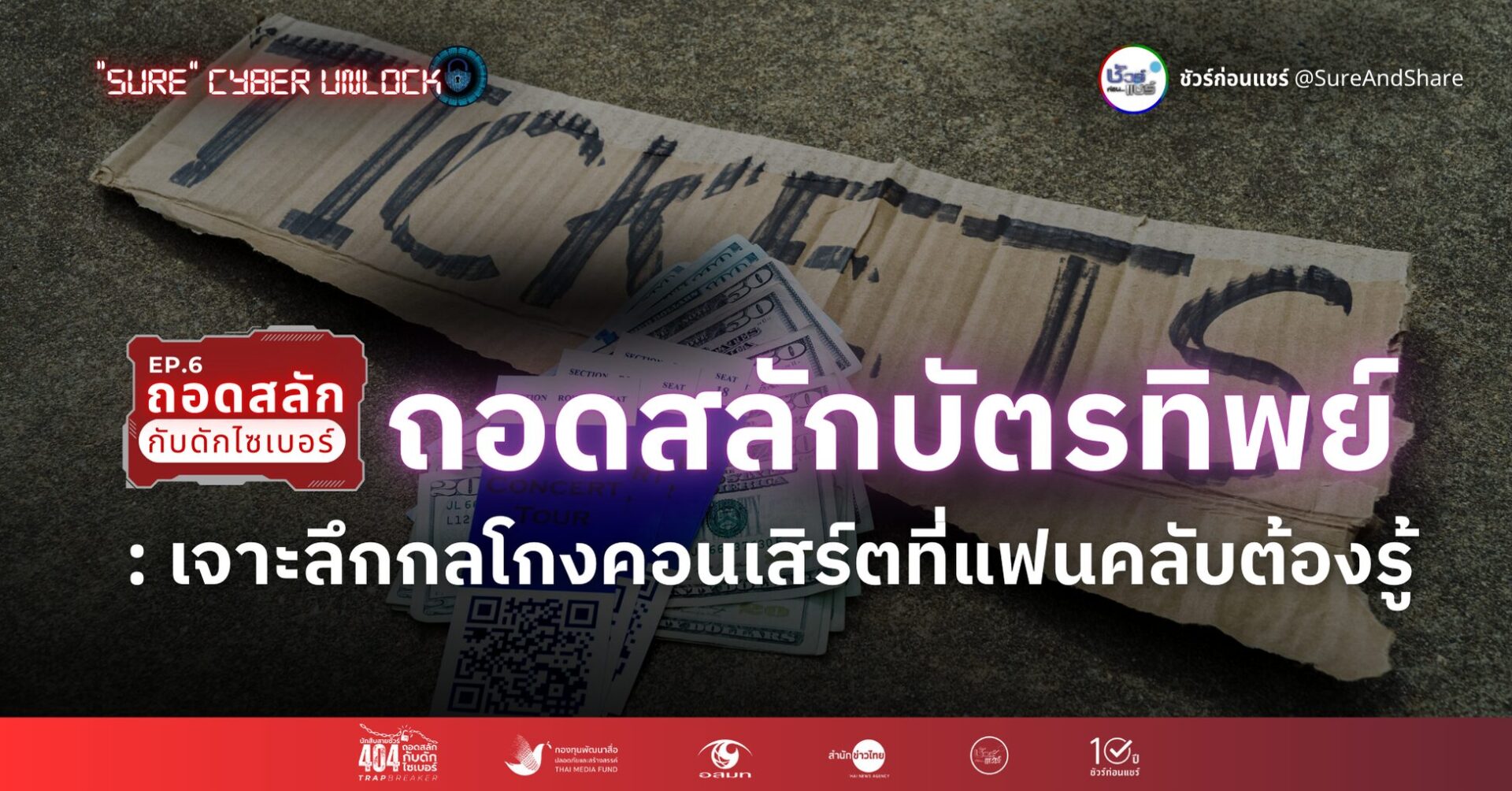 การเป็นแฟนคลับที่ดีคือการสนับสนุนศิลปินอย่างมีความสุขและปลอดภัย การเตรียมพร้อมและรู้เท่าทันกลโกงเหล่านี้ จะช่วยให้ทุกประสบการณ์คอนเสิร์ตของคุณเต็มไปด้วยรอยยิ้มและเสียงเพลงอย่างแท้จริงหมายเหตุ: บทความนี้เป็นส่วนหนึ่งของบทความชุด “Sure” Cyber Unlock ถอดสลักกับดักไซเบอร์ อันเป็นส่วนหนึ่งของโครงการ “นักสืบสายชัวร์ 404: ถอดสลักกับดักไซเบอร์”