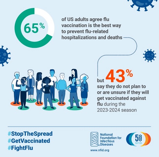 ผลสำรวจความคิดเห็นชาวอเมริกันโดยมูลนิธิโรคติดเชื้อแห่งชาติสหรัฐฯ เมื่อปี 2023 พบว่ามีประชาชน 43% จะไม่ฉีดวัคซีนไข้หวัดใหญ่หรือไม่มั่นใจว่าจะฉีดวัคซีนไข้หวัดใหญ่หรือไม่ หนึ่งในเหตุผลหลักของการปฏิเสธวัคซีนคือความกังวลต่ออาการข้างเคียงและไม่มั่นใจในประสิทธิผลของวัคซีน