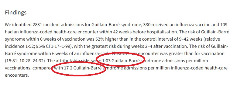 เท่ากับว่าผู้รับวัคซีนไข้หวัดใหญ่มีความเสี่ยงป่วยด้วยโรค GBS น้อยกว่าผู้ป่วยโรคไข้หวัดใหญ่ถึง 17 เท่า