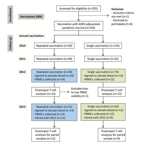 เช่นเดียวกับงานวิจัยในกลุ่มบุคลากรทางการแพทย์เมื่อปี 2017 ที่พบว่า การฉีดวัคซีนไข้หวัดใหญ่เป็นประจำทุกปีตั้งแต่ปี 2009-2017 ช่วยให้มีภูมิคุ้มกันต่อไวรัสไข้หวัดใหญ่มากกว่าผู้ที่เคยฉีดวัคซีนไข้หวัดใหญ่แค่ครั้งเดียวในปี 2009