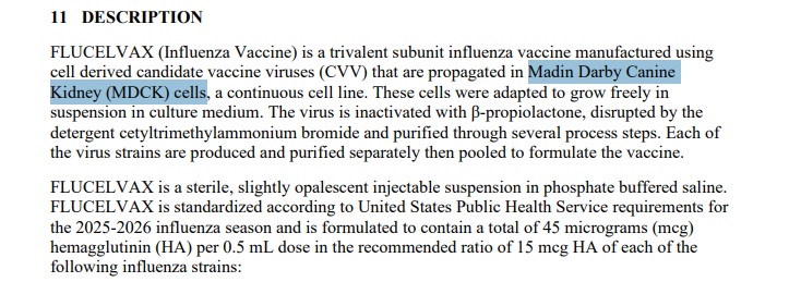 แม้จะมีการใช้เซลล์ของสุนัขหรือแมลงในการเพาะเลี้ยงไวรัสเพื่อการผลิตวัคซีน แต่เซลล์ของสุนัขหรือแมลงไม่ใช่ส่วนประกอบของวัคซีนตามที่กล่าวอ้าง