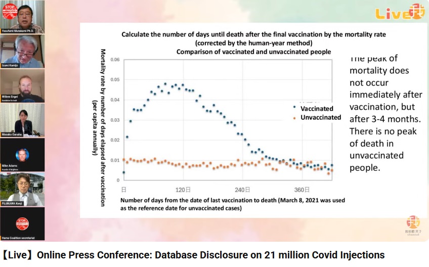 คำกล่าวอ้างชิ้นแรกมาจากกลุ่มต่อต้านวัคซีนในประเทศญี่ปุ่นในชื่อ United Citizens for Stopping mRNA Vaccines ซึ่งมีการจัดเสวนาทางออนไลน์ในภาษาอังกฤษเมื่อกรกฎาคม 2025 ที่ผ่านมา
