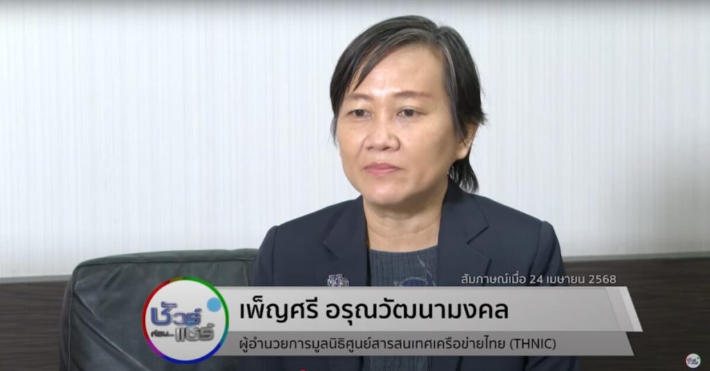ศูนย์ชัวร์ก่อนแชร์ ตรวจสอบกับ เพ็ญศรี อรุณวัฒนามงคล ผู้อำนวยการมูลนิธิศูนย์สารสนเทศเครือข่ายไทย