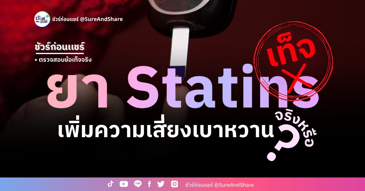 มีข้อมูลเท็จเกี่ยวกับ Statins ยาลดไขมันเพื่อป้องกันหลอดเลือดอุดตันเผยแพร่ในต่างประเทศ เมื่อมีการอ้างว่ายา Statins นอกจากไม่มีประโยชน์ ยังทำให้ผู้ใช้มีความเสี่ยงเป็นเบาหวานมากขึ้น