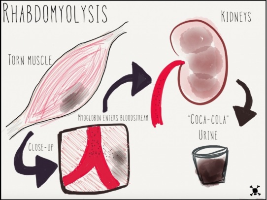 อาการทางกล้ามเนื้อที่รุนแรงจากการใช้ยา Statins คือ ภาวะกล้ามเนื้อลายสลาย (Rhabdomyolysis) ก่อให้เกิดความเจ็บปวดที่กล้ามเนื้ออย่างรุนแรง การทำงานของตับล้มเหลว ไตวาย จนถึงเสียชีวิต
