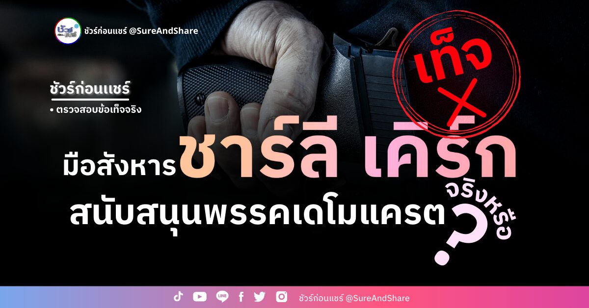 1.มีข้อมูลเท็จแพร่ทางออนไลน์ว่ามือสังหาร ชาร์ลี เคิร์ก สนับสนุนพรรคเดโมแครต