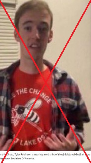 ส่วนภาพถ่ายที่อ้างว่า ไทเลอร์ เจมส์ โรบินสัน ใส่เสื้อที่มีข้อความว่า Salt Lake DSA ได้รับการยืนยันว่า ชายในภาพแท้จริงแล้วมีชื่อว่า แจ็ค เบลโลว์