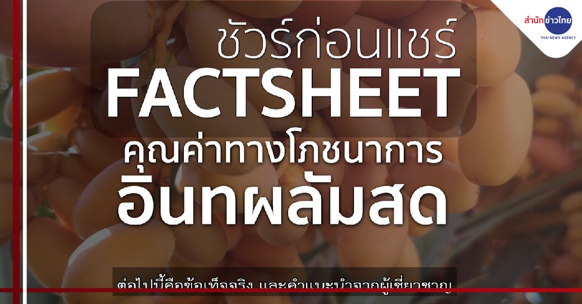 กรุงเทพฯ 28 ก.ย.-บนสังคมออนไลน์ในช่วงหลายเดือนที่ผ่านมา มีความนิยมการรับประทานผลอินทผลัมสด รวมทั้งยังมีการกล่าวถึงหลากหลายคุณประโยชน์ แต่ข้อเท็จจริงเรื่องนี้เป็นอย่างไร ติดตามจากศูนย์ชัวร์ก่อนแชร์.-สำนักข่าวไทย