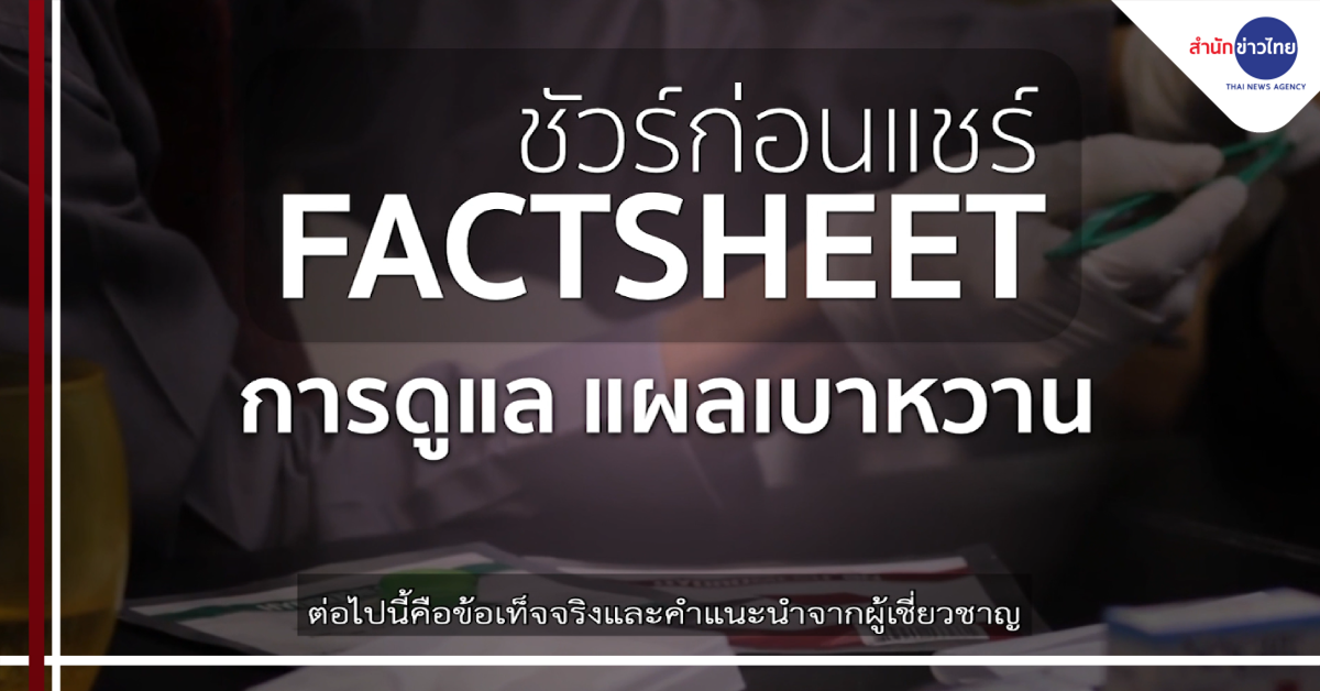 กรุงเทพฯ 30 ก.ย.-แผลเบาหวาน เป็นหนึ่งในแผลเรื้อรังที่ป้องกันและหลีกเลี่ยงได้ แต่ถ้าเป็นแผลแล้วจะดูแลให้หายเร็วได้อย่างไร วันนี้มีข้อเท็จจริงและคำแนะนำของผู้เชี่ยวชาญ ติดตามจากศูนย์ชัวร์ก่อนแชร์.-สำนักข่าวไทย