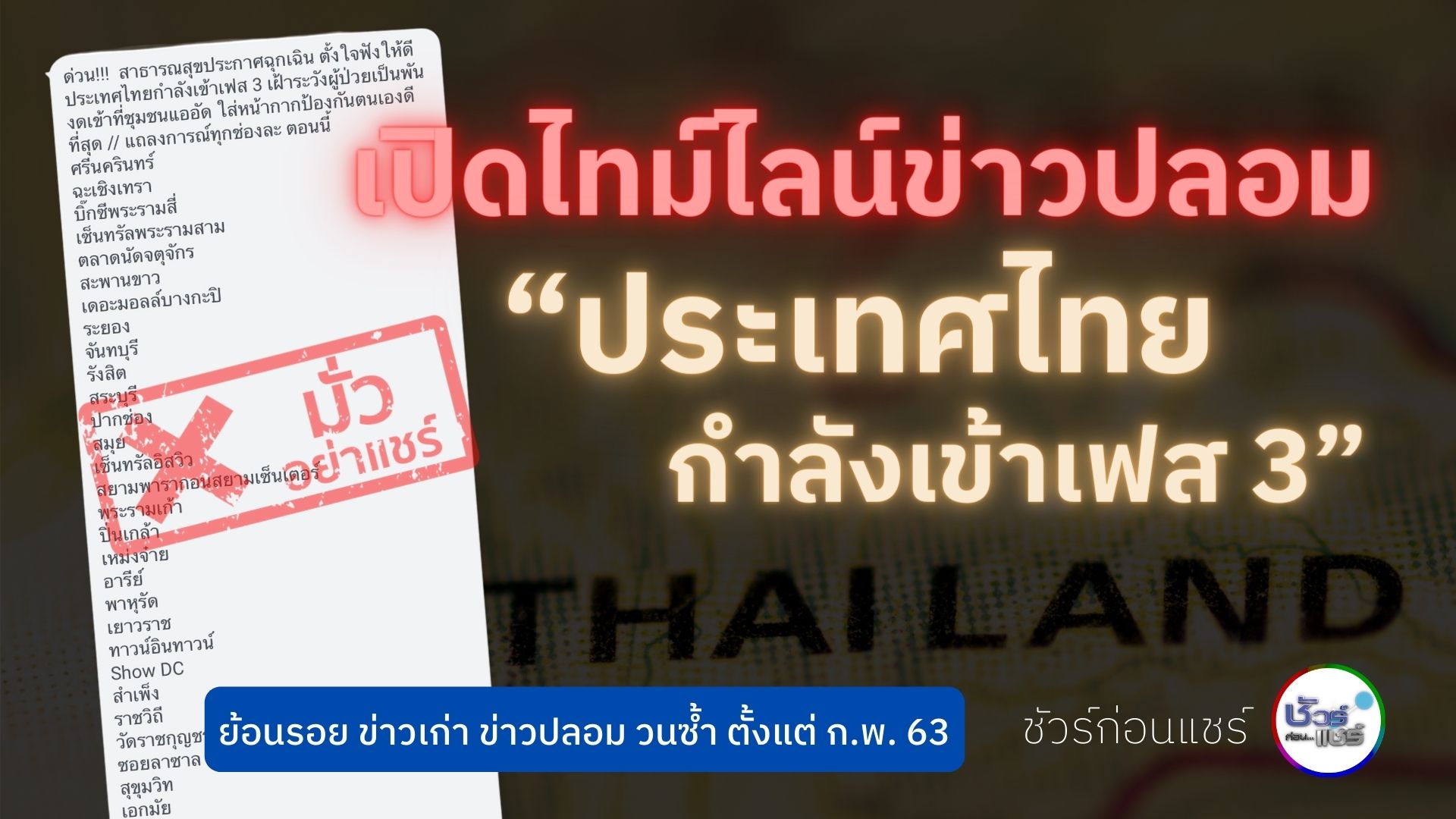 จากการตรวจสอบข้อเท็จจริงการแชร์ข้อความว่า “ประเทศไทยกำลังเข้าสู่การแพร่ระบาดของเชื้อไวรัสโควิด-19 เฟส 3” นั้น ไม่เป็นความจริง และ มีจุดสังเกตว่า ทุกครั้งที่มีการแถลงข่าวจากทางราชการเมื่อพบสถานการณ์การแพร่ระบาดของเชื้อไวรัสโควิด-19 ครั้งสำคัญ หรือพบการระบาดใหญ่ในกลุ่มคนหมู่มาก มักจะมีข่าวปลอม ข้อมูลเท็จเผยแพร่ตามมาในภายหลัง ซึ่งอาจจะเป็นการตื่นตระหนก หรือฟังสารไม่ครบถ้วน แล้วเกิดการส่งต่อข้อมูลข่าวสารที่คาดเคลื่อน นำมาสู่การแชร์ข่าวปลอม ข้อมูลเท็จโดยไม่ตั้งใจ หรืออาจจะมีขบวนการเผยแพร่ข่าวปลอมเพื่อหวังให้เกิดอะไรบางอย่างขึ้นในสังคมก็เป็นอีกเรื่องที่น่าคิด