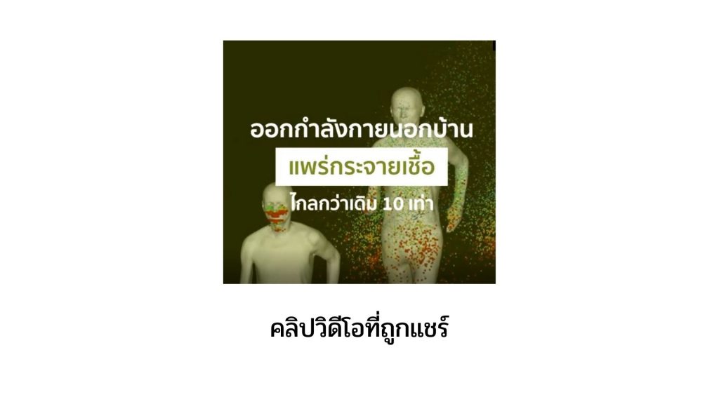 คลิปวิดีโอความยาว 1.17 นาที ถูกแชร์ผ่านสื่อสังคมออนไลน์แห่งหนึ่ง มีผู้กดถูกใจวิดีโอดังกล่าวจำนวน 267 คน และมีการแชร์คลิปวิดีโอดังกล่าวออกไปมากถึง 168 ครั้ง (ณ วันที่ 20 กรกฎาคม 2564) โดยเนื้อหาในคลิประบุว่า การออกกำลังกายนอกบ้านทำให้เชื้อไวรัสโควิด-19 แพร่กระจายได้ไกลกว่าเดิมมากถึง 10 เท่า และมีการอ้างผลการศึกษาจากมหาวิทยาลัยของเบลเยี่ยมและดัตซ์ เกี่ยวกับเรื่องการแพร่กระจายของเชื้อไวรัสโควิด-19 ในขณะออกกำลังกาย ไม่ว่าจะเป็นการเดิน การวิ่ง การปั่นจักรยานแบบช้าๆ สามารถแพร่เชื้อได้ไกลกว่า 10 เมตร โดยคลิปวิดีโอดังกล่าว ได้ถูกส่งเข้ามาสอบถามข้อเท็จจริงกับ “ศูนย์ชัวร์ก่อนแชร์” เป็นจำนวนมาก