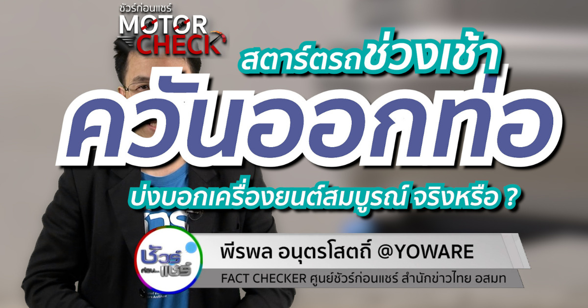 6 กุมภาพันธ์ 2567 – ตามที่มีการแชร์ว่า เมื่อสตาร์ตรถช่วงเช้า แล้วมีควันหรือน้ำ พุ่งออกมาจากท่อไอเสีย หมายความว่า เครื่องยนต์ยังสมบูรณ์อยู่นั้น