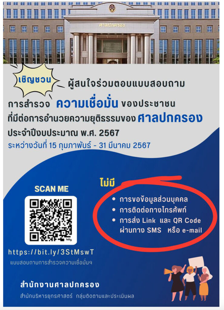 📌 บทสรุป : ❌ ไม่จริง ไม่ควรแชร์ต่อ ❌ เป็น QR CODE จริง เพื่อสำรวจความเชื่อมั่นของประชาชนต่อศาลปกครอง