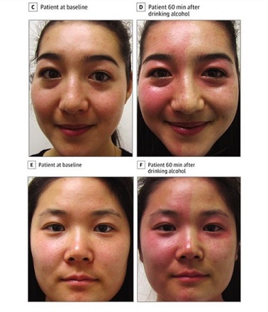 คนที่มีอาการหน้าแดงหลังจากดื่มเครื่องดื่มแอลกอฮอล์เพียงเล็กน้อย เป็นสัญญาณของการเกิดอาการ Alcohol Flush Reaction ที่เกิดขึ้นเมื่อตับของคนผู้นั้นไม่มีเอนไซม์ ALDH2 ที่ช่วยในการขับแอลกอฮอล์ออกจากร่างกาย นำไปสู่อาการ หน้าแดง คอแดง คลื่นไส้ อาเจียน ปวดศีรษะ เมาค้าง แน่นหน้าอก หัวใจเต้นเร็ว บางรายที่อาการรุนแรงอาจถึงขั้นเสียชีวิตได้
