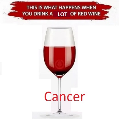 นอกจากประโยชน์ของไวน์แดงต่อสุขภาพจะไม่ชัดเจนแล้ว ผลเสียจากการได้รับแอลกอฮอล์อย่างต่อเนื่องยังเพิ่มความเสี่ยงเป็นโรคมะเร็งอีกด้วย