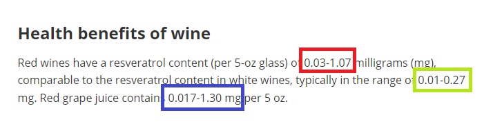 เว็บไซต์ News Medical ได้เปรียบเทียบปริมาณ Resveratrol ในไวน์และน้ำองุ่น โดยพบว่า