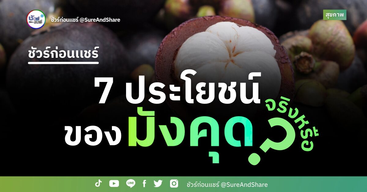 บนสื่อสังคมออนไลน์มีการแชร์ 7 ประโยชน์ของมังคุดที่มีตั้งแต่การลดความเสี่ยงเรื่องเลือดออกตามไรฟัน ไปจนถึงรักษามะเร็งต่อมลูกหมาก จริงหรือ ?
