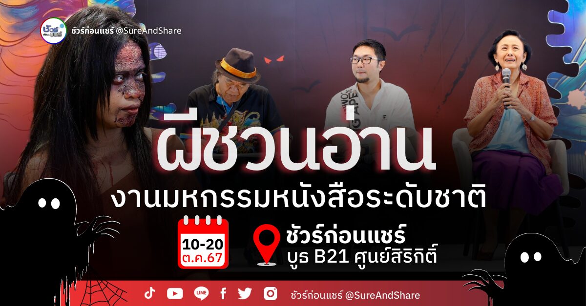 ขอกระซิบบอกว่างานนี้ไม่อยากให้พลาด ศูนย์ชัวร์ก่อนแชร์ อสมท ขนขบวนความรู้มาบอกเล่าให้กับเหล่านักอ่านแบบไม่มีกั๊ก พร้อมกิจกรรมสนุก ๆ มากมาย ที่บูธ B21 โซนหนังสือเด็กและการศึกษา อยู่ใกล้บริเวณทางเข้ารถไฟฟ้า MRT วันที่ 10-20 ตุลาคม 2567 ณ ฮอลล์ 5-7 ชั้น LG ณ ศูนย์การประชุมแห่งชาติสิริกิติ์
