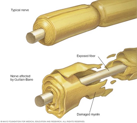 Guillain-Barré Syndrome (GBS) คือโรคที่เซลล์เนื้อเยื่อประสาทส่วนปลายถูกทำลายโดยระบบภูมิคุ้มกันตนเอง สาเหตุทั้งจากการติดเชื้อโรคหรือการฉีดวัคซีน ส่งผลให้เกิดอาการชาที่ปลายมือและเท้า กล้ามเนื้ออ่อนแรง จนถึงการเป็นอัมพาต แม้ส่วนใหญ่จะสามารถรักษาให้หายเป็นปกติ แต่มีผู้ป่วยบางรายที่ถูกทำลายระบบประสาทไปอย่างถาวร