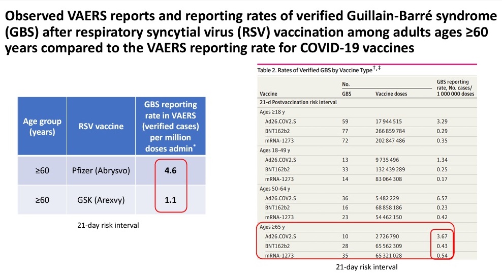 เกิดความกังวลต่อการฉีดวัคซีนไวรัส RSV ให้กับกลุ่มผู้สูงอายุในสหรัฐอเมริกา เมื่อพบผู้ฉีดวัคซีนป่วยเป็นโรคระบบประสาทส่วนปลาย Guillain-Barré Syndrome (GBS) สูงกว่าที่คาด โดยเฉพาะจากผู้รับวัคซีน Abrysvo ของบริษัท Pfizer ที่พบสัดส่วนผู้ป่วยโรค GBS สูงกว่าวัคซีนไวรัส RSV ยี่ห้ออื่น ๆ