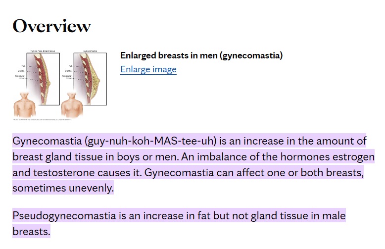 Gynecomastia คืออาการที่ร่างกายของผู้ชายสูญเสียความสมดุลของระดับฮอร์โมนเพศ เมื่อร่างกายได้รับปริมาณฮอร์โมนเอสโตรเจนมากเกินไป ส่งผลให้ระดับฮอร์โมนเพศชายทั้งแอนโดรเจนและเทสโทสเทอโรนในกระแสเลือดลดลง ก่อให้เกิดการยับยั้งการสร้างกล้ามเนื้อ และไปกระตุ้นการขยายตัวของเนื้อเยื่อบริเวณเต้านม สาเหตุมาจากการได้รับฮอร์โมนเอสโตรเจนจากการใช้ยา การดื่มสุรามากเกินไป หรือจากความเครียด