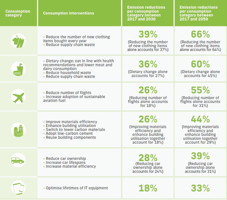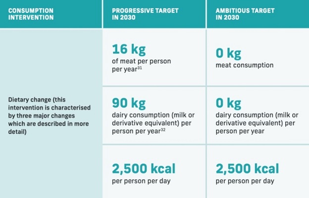 ในรายงานชื่อ The Future of Urban Consumption in a 1.5°C World ได้เสนอแนวคิดลดการบริโภคเนื้อสัตว์เพื่อลดโลกร้อน โดยเสนอว่าให้เน้นบริโภคอาหารจากพืชผัก ในปริมาณที่เหมาะสมต่อสุขภาพ เพื่อลดปริมาณขยะอาหาร (Food Waste) ซึ่งจะช่วยลดการปล่อยก๊าซเรือนกระจกจากการบริโภคของมนุษย์ได้ถึง 30% ภายในปี 2030