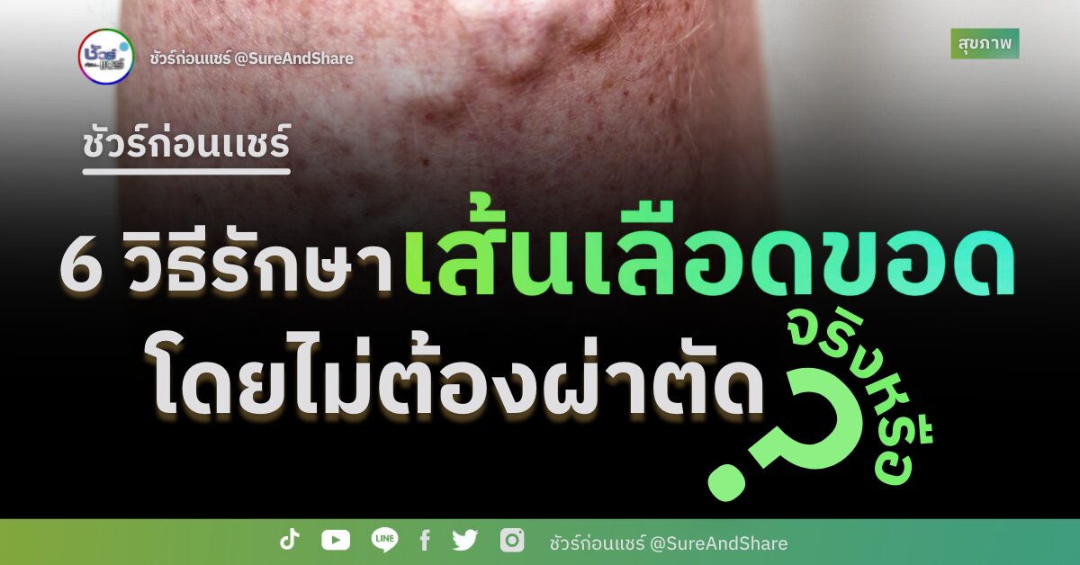 บนสื่อสังคมออนไลน์มีการแชร์ “6 วิธีรักษาหลอดเลือดขอดได้ โดยไม่ต้องผ่าตัด” มีตั้งแต่ปรับพฤติกรรม เลือกกินอาหารและสมุนไพรบางชนิด ลดน้ำหนัก ออกกำลังกาย และใส่ถุงน่องหลอดเลือดขอด จริงหรือ ?