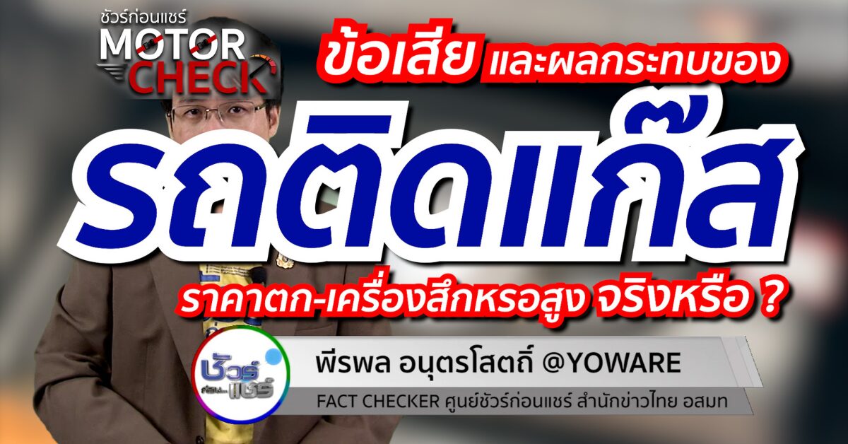 29 ตุลาคม 2567 – บนสังคมออนไลน์มีการแชร์ข้อเสียของการดัดแปลงติดตั้งระบบแก๊สรถยนต์ เช่น ราคาขายต่อตกลง และ เครื่องยนต์เสื่อมสภาพไวกว่าปกติ เรื่องนี้จริงหรือไม่ ติดตามได้ใน ซีรีส์ ชัวร์ก่อนแชร์ มอเตอร์เช็ก กับคุณพีรพล อนุตรโสตถิ์ จากศูนย์ชัวร์ก่อนแชร์