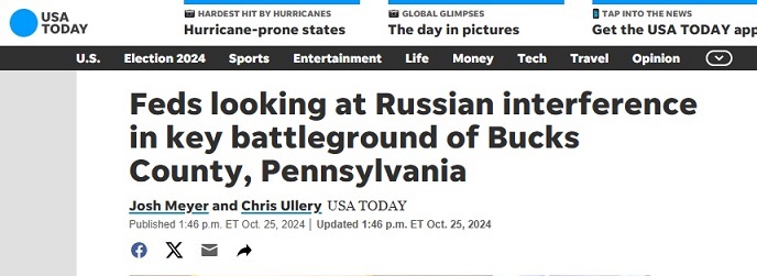 มีข้อมูลเท็จเกี่ยวกับการเลือกตั้งประธานาธิบดีสหรัฐอเมริกา เผยแพร่ทางสื่อสังคมออนไลน์ในต่างประเทศ เมื่อมีผู้อ้างว่า เจ้าหน้าที่ในหน่วยเลือกตั้งของ บักส์ เคาตี รัฐเพนซิลเวเนีย ลงมือทำลายบัตรลงคะแนนทางจดหมาย ที่ผู้ใช้สิทธิลงคะแนนเลือกอดีตประธานาธิบดี โดนัลด์ ทรัมป์ อย่างจงใจ จนคลิปถูกแชร์ในวงกว้างและกล่าวหาว่าเป็นหลักฐานการแทรกแซงการเลือกตั้งเพื่อประโยชน์แก่พรรคเดโมแครต