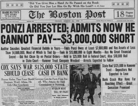 ในเดือนพฤศจิกายน 1920 ชาร์ลส์ พอนซี ได้รับโทษจำคุกเป็นเวลา 5 ปีในข้อหาการฉ้อโกงทางไปรษณีย์