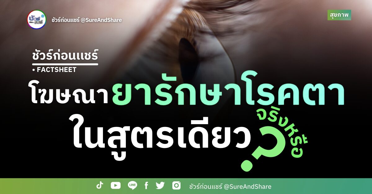 ดูเพิ่มเติมรายการ ชัวร์ก่อนแชร์ : โฆษณายารักษาโรคตาในสูตรเดียว จริงหรือ ?