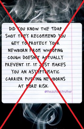 มีข้อมูลเท็จเกี่ยวกับวัคซีน Tdap เผยแพร่ทาง Facebook ในต่างประเทศ โดยอ้างว่าการฉีดวัคซีน Tdap ให้กับแม่เพื่อสร้างภูมิคุ้มกันโรคคอตีบ โรคไอกรน และโรคบาดทะยักแก่ทารกในครรภ์ นอกจากจะไม่มีประโยชน์แล้ว ยังเพิ่มความเสี่ยงทำให้ทารกได้รับเชื้อโรคไอกรนจากแม่ที่ฉีดวัคซีน แล้วติดเชื้อแบบไม่มีอาการ