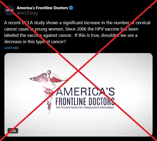 มีข้อมูลเท็จเกี่ยวกับวัคซีน HPV เผยแพร่ทางคลิปวิดีโอใน X ที่สหรัฐอเมริกา โดยอ้างว่า ผลการวิจัยของมหาวิทยาลัยแคลิฟอร์เนีย ลอสแอนเจลิส (UCLA) พบว่าการรณรงค์ฉีดวัคซีน HPV ให้กับเด็กหญิง ไม่ช่วยลดโอกาสการป่วยเป็นมะเร็งปากมดลูกเหมือนที่หน่วยงานสาธารณสุขคาดไว้ เพราะหลังจากเริ่มรณรงค์ฉีดวัคซีน HPV ในสหรัฐอเมริกามาตั้งแต่ปี 2006 ปัจจุบันกลับพบว่ายอดผู้ป่วยมะเร็งปากมดลูกกลับเพิ่มขึ้น