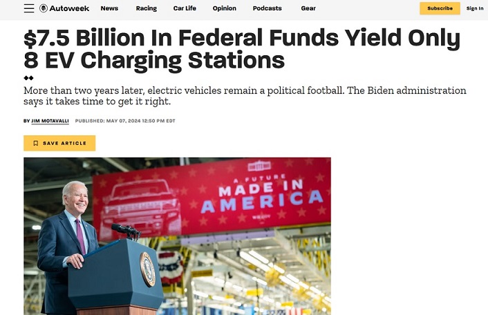 มีข้อมูลเท็จเกี่ยวกับยานยนต์ไฟฟ้าเผยแพร่ในต่างประเทศ เมื่อ โดนัลด์ ทรัมป์ ว่าที่ประธานาธิบดีคนที่ 47 ของสหรัฐฯ อ้างระหว่างหาเสียงเลือกตั้งในช่วงปี 2024 ว่า นโยบายผลักดันยานยนต์พลังงานไฟฟ้าของ ประธานาธิบดี โจ ไบเดน เป็นนโยบายที่ล้มเหลวและอาจส่งผลเสียต่อเศรษฐกิจของสหรัฐฯ โดยโจมตีไปที่โครงสร้างเครือข่ายสถานีชาร์จรถยนต์ไฟฟ้าทั่วสหรัฐฯ มูลค่ากว่า 7.5 พันล้านดอลลาร์สหรัฐฯ ที่นำไปสู่การสร้างสถานีชาร์จรถยนต์ไฟฟ้าเพียง 8 แห่ง ซึ่ง โดนัลด์ ทรัมป์ อ้างว่า หากต้องการสร้างสถานีชาร์จรถยนต์ไฟฟ้าทั่วสหรัฐฯ จำเป็นต้องใช้เงินสูงกว่า 5-10 ล้านล้านดอลลาร์สหรัฐฯ ซึ่งอาจทำให้ประเทศอยู่ในสภาวะล้มละลายได้