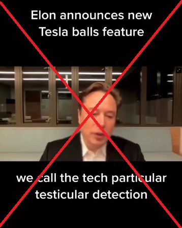 มีคลิปวิดีโอข้อมูลเท็จเกี่ยวกับยานยนต์ไฟฟ้าเผยแพร่ทาง Instagram ในต่างประเทศ โดยอ้างว่า อีลอน มัสก์ นักธุรกิจมหาเศรษฐี เจ้าของบริษัทรถยนต์พลังงานไฟฟ้า Tesla เตรียมเปิดตัววิธีการยืนยันตัวตนด้วยข้อมูลทางชีวภาพ หรือ Biometrics รูปแบบใหม่ ด้วยการสแกนอัณฑะของผู้ขับเพื่อสตาร์ตรถยนต์ ในเทคนิคที่เรียกว่า Particular Testicular Detection