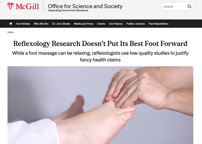 ข้อมูลจากเว็บไซต์ Office for Science and Society โดยมหาวิทยาลัยแม็คกีล ประเทศแคนาดา ระบุว่า การรักษาด้วยวิธีการนวดกดจุดตามฝ่ามือและฝ่าเท้าหรือ Reflexology ให้ผลที่ไม่ชัดเจน เนื่องจากมีการศึกษาในวงจำกัด และผลส่วนใหญ่มาจากความรู้สึกของผู้เข้ารับการบำบัดเป็นหลัก