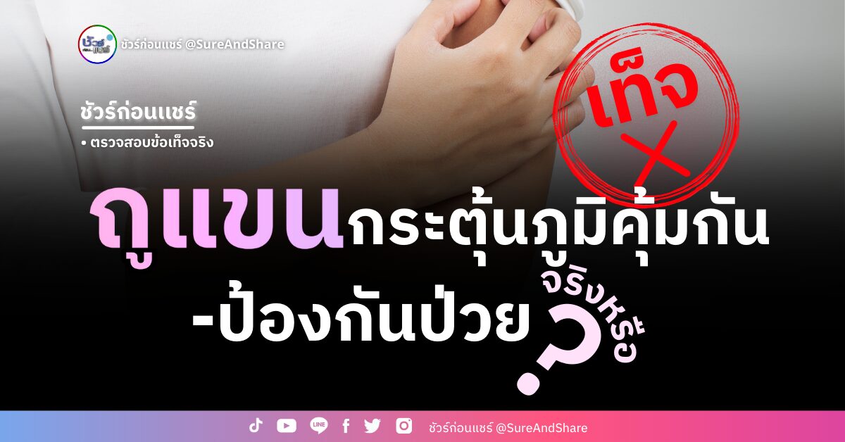 มีคลิปวิดีโอข้อมูลเท็จเกี่ยวกับประสิทธิผลของการนวดเผยแพร่ทาง Facebook โดยอ้างว่า การนวดแขนตั้งแต่หัวแม่มือไปจนถึงหัวไหล่แรง ๆ เป็นเวลา 30 วินาทีทุกวัน ๆ จะช่วยกระตุ้นระบบภูมิคุ้มกันให้แข็งแรงเพื่อป้องกันการป่วยได้ โดยอ้างว่าเส้นประสาทบริเวณแขนเชื่อมต่อกับระบบทางเดินหายใจโดยตรง