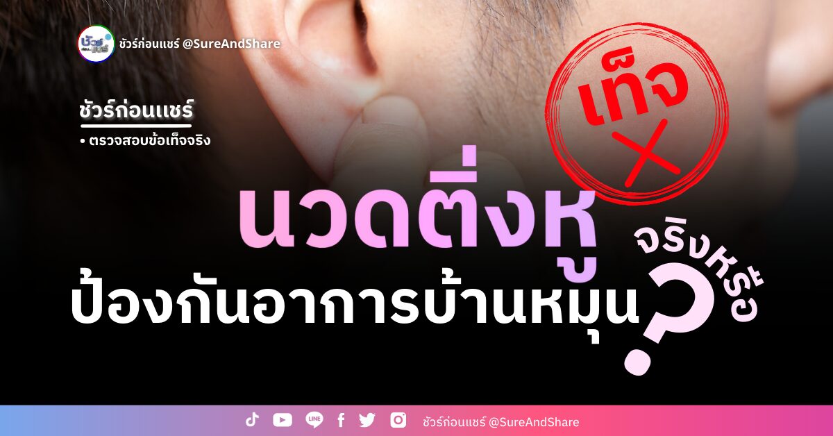 มีข้อมูลเท็จเกี่ยวกับประสิทธิผลของการนวดเผยแพร่ทางสื่อสังคมออนไลน์ในต่างประเทศ โดยอ้างว่าการนวดติ่งหน้ารูหู (Tragus) สามารถป้องกันอาการเวียนศีรษะบ้านหมุน อันมีสาเหตุจากหินปูนในหูชั้นในเคลื่อน และยังป้องกันอาการสมองเสื่อมได้อีกด้วย