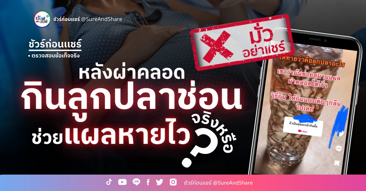 เรื่องที่แชร์บนสื่อสังคมออนไลน์ “กินลูกอ่อนปลาช่อนดิบเพื่อช่วยให้แผลผ่าคลอดหายไว” ไม่จริง ไม่ควรแชร์ต่อ