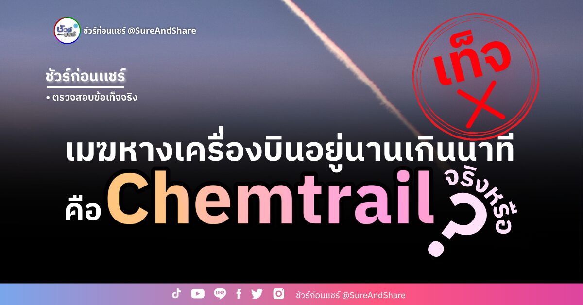 มีทฤษฎีสมคบคิดเกี่ยวกับเมฆหางเครื่องบินหรือ Contrail เผยแพร่ทางสื่อสังคมออนไลน์ในสหรัฐอเมริกา โดยอ้างว่า มีวิธีการสังเกตความแตกต่างระหว่าง Contrail และ Chemtrail โดยอธิบายว่าหากเป็น Contrail ที่เกิดขึ้นตามธรรมชาติ เมฆหางเครื่องบินดังกล่าวจะสลายตัวไปอย่างรวดเร็ว แต่หากพบเมฆหางเครื่องบินที่ลอยค้างอยู่บนท้องฟ้าเป็นเวลานานเกิน 1 นาที แสดงว่าเมฆหางเครื่องบินที่พบมีส่วนประกอบของสารเคมี หรือที่เรียกว่า Chemtrail นั่นเอง