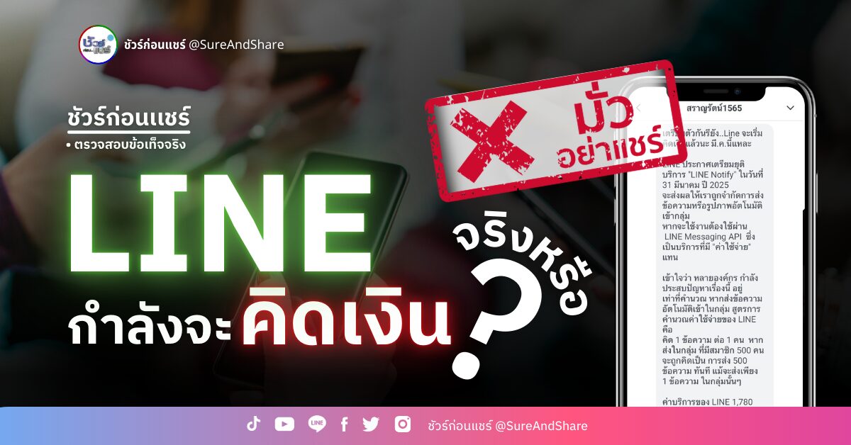 ศูนย์ชัวร์ก่อนแชร์ สำนักข่าวไทย อสมท ตรวจสอบพบว่า ข้อความดังกล่าวเกิดจากความเข้าใจคลาดเคลื่อน เกี่ยวกับการคิดค่าบริการ ของอีกบริการหนึ่งที่มีชื่อว่า Line Notify ซึ่งเป็นบริการสำหรับซึ่งเป็นบริการสำหรับนักพัฒนาโปรแกรม ไม่เกี่ยวข้องกับแอพ LINE ที่เราใช้กันอยู่เป็นประจำแต่อย่างใด