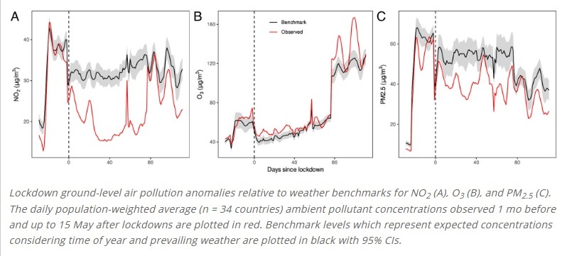 ทีมวิจัยพบว่าการล็อกดาวน์ในช่วงปี 2020 ทำให้ความเข้มข้นของไนโตรเจนไดออกไซด์และฝุ่น PM 2.5 ลดลงประมาณ 60% และ 31% ตามลำดับ