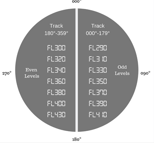 สิ่งที่กำหนดว่าเครื่องบินในแต่ละเส้นทางบินจะมีความสูงเท่าใด ได้แก่ Cruising Altitudes โดยเครื่องบินที่บินสวนกันในเพดานบินที่ต่ำกว่า 41,000 ฟุต จะต้องมีระยะห่างในแนวดิ่งไม่ต่ำกว่า 1,000 ฟุต